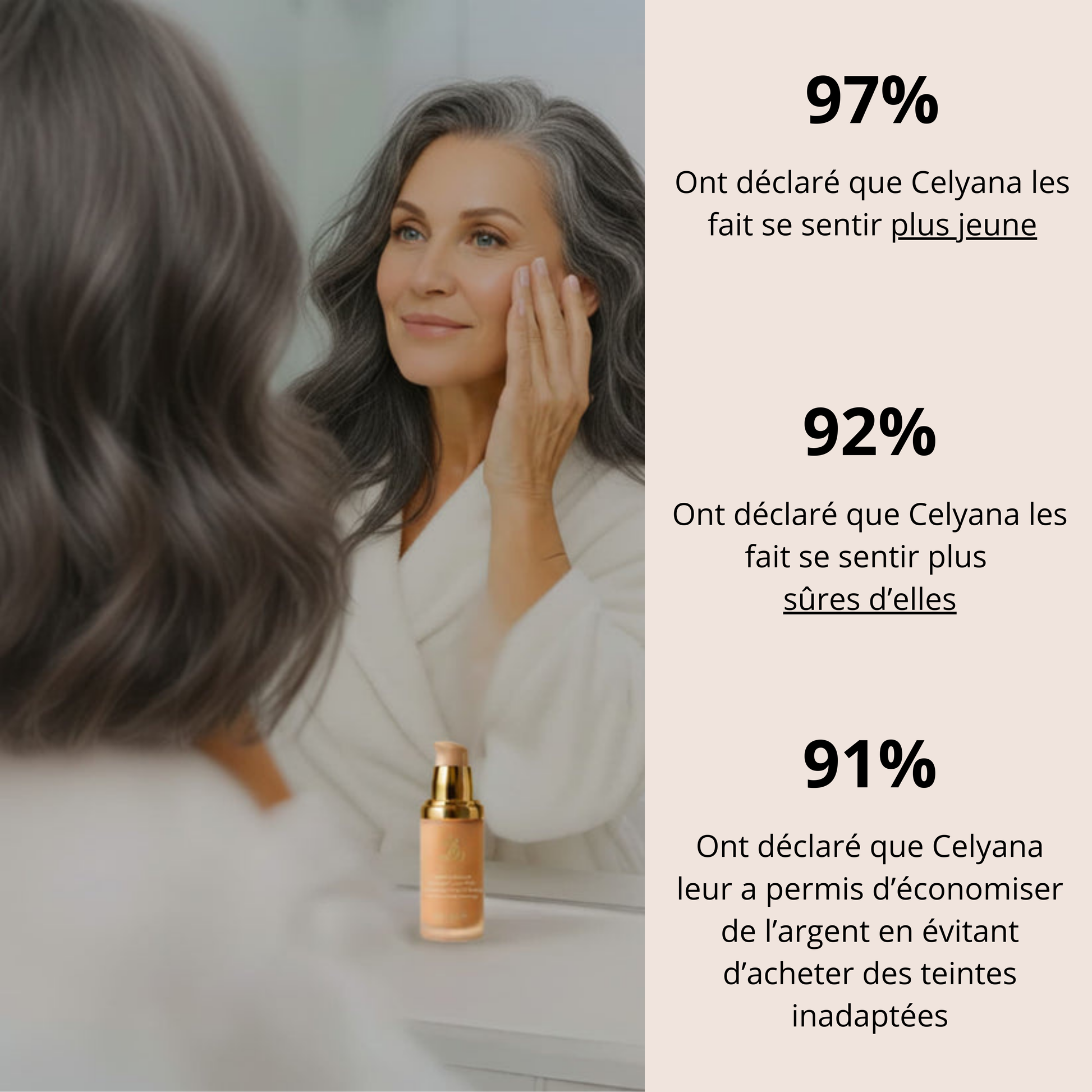 Grâce à sa combinaison soin + maquillage, il répond parfaitement aux besoins des femmes matures.